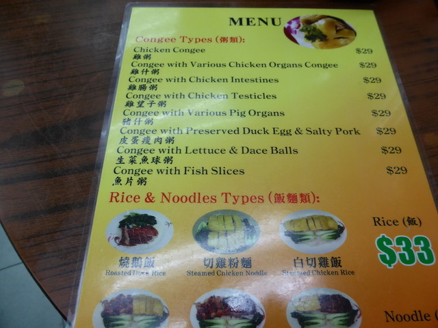 この粥店は、店名の通り鶏に特化したことがウリで、内臓も食べれるんです。えっと、メニューの2番目がそうですね。