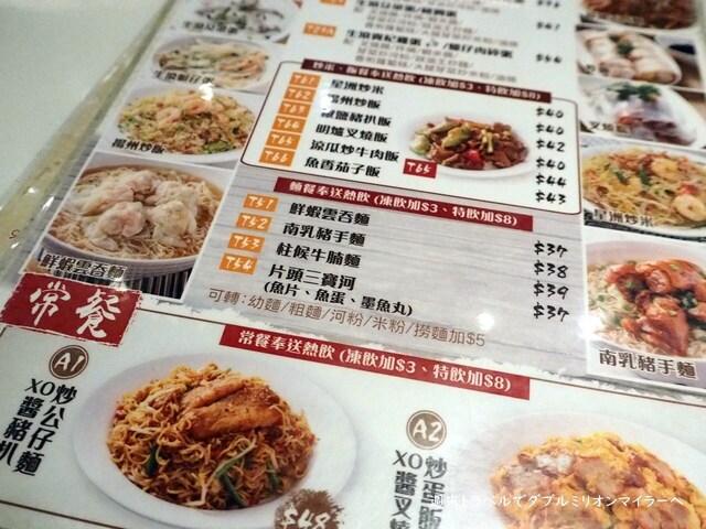 出かけたのは17時過ぎ、店内のメニューを見ると「下午茶」(アフタヌーンティ)メニューが注文できる時間帯、セットメニューがお得そうでしたので、「下午茶」のセットメニューの中から注文することにしました。セットメニューは、お粥や麺に大根餅や腸粉と飲み物が付いたものなど、茶餐店(香港式喫茶店)にあるようなメニューのラインナップ。麺料理やご飯ものとのセットも種類豊富。妻はお粥のセット、夫は海老雲呑のセットをオーダーすることにしました。お粥に大根餅とミルクティをつけたセットで33ドル、海老雲呑にレモンティをつけて39ドルととっても庶民的なお値段です。