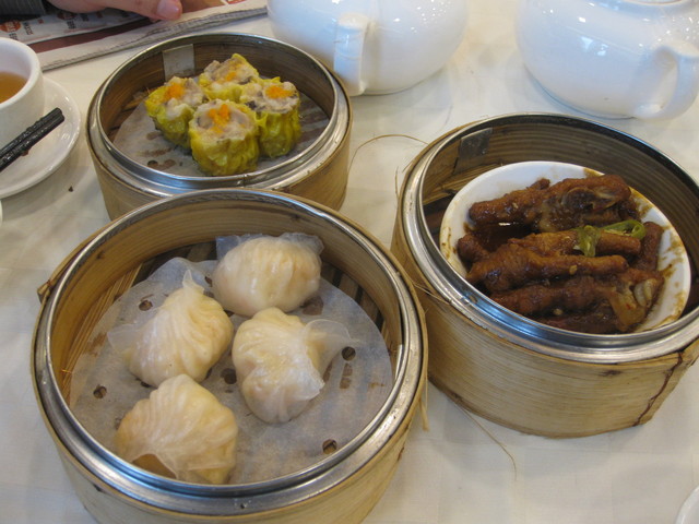 蝦餃 焼賣 鼓汁蒸鳳爪 鶏の脚を蒸し煮込んで朝飯で食う、というだけで広東の食文化に降参です。