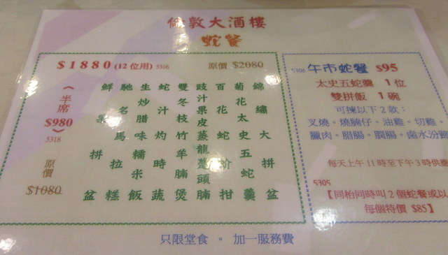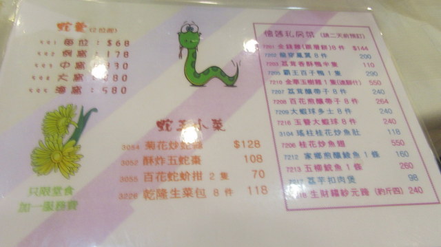 冬の名物、蛇のメニュー
