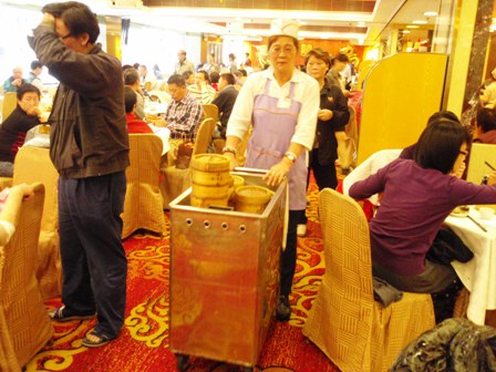 現在では少なくなってきているワゴン式飲茶。ワゴンの中にはある程度を熱を保てる熱源があり、熱々をそのまま頂けるメリットがある。