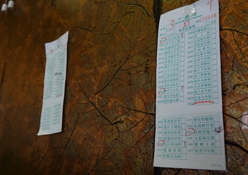 オーダー後、シートは背後の壁にセロテープで貼られます