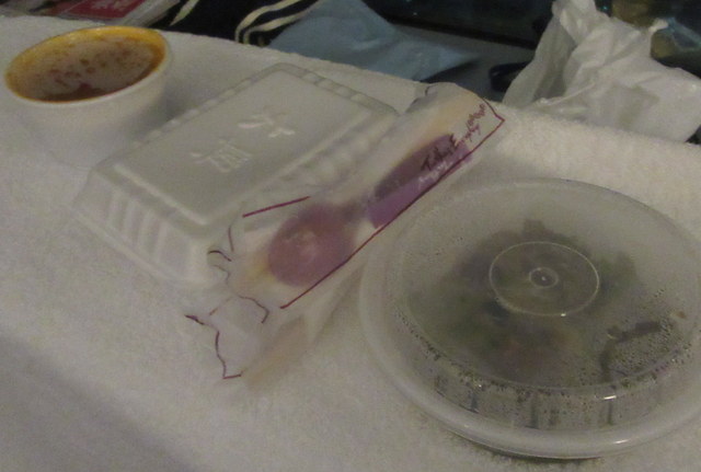 はい、世界一人口稠密な土地である旺角、木曜日ですが新年が近づく夜8時半。店は若いお客さんたちで満杯かつすごい列。ここは素早く切り替えて外賣(テイクアウェイ)にしましょう。