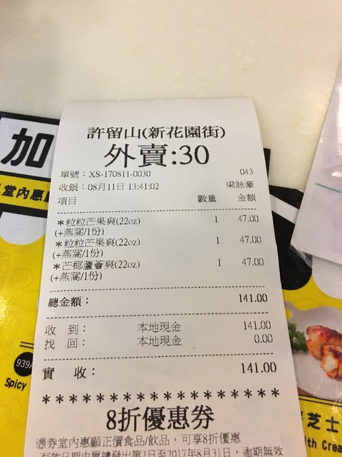 • 許留山 - レシート
