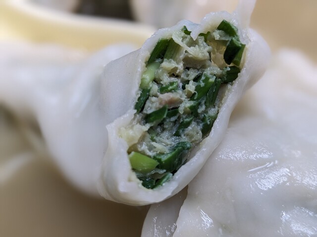 中味はニラと豚肉。とにかくギッチギチにニラが詰まっており、この時わたしは恐らく日本人で最もニラ臭い男だったという自信があります。スープも複雑な味わいであり、麺を入れて食べても美味しいでしょう。恐らくそういうカスタマイズもできるはずです。