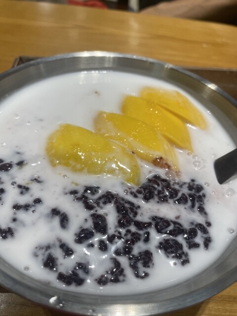 先ずはマンゴーやドリアンのかき氷。もち米や小豆が入っていてスイーツなんだけど、とても身体に良さそうな食材が沢山入っていました。食べきれない量ですが、1人1個頼まないとダメというルールがあり、1人コーヒー☕️でシェアしても良かったかもね。