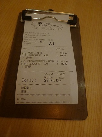 少し割高な感じに思いますが、現状の香港では当たり前の価格と思いました。