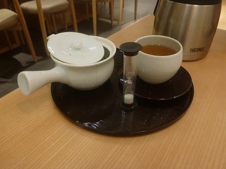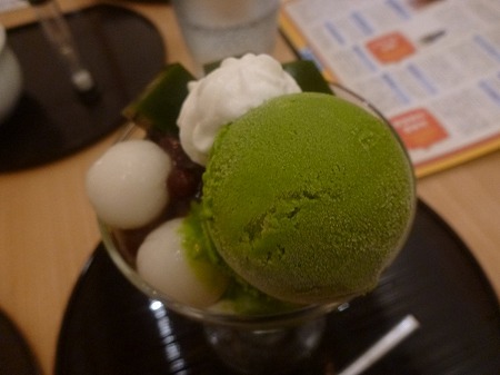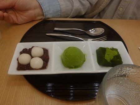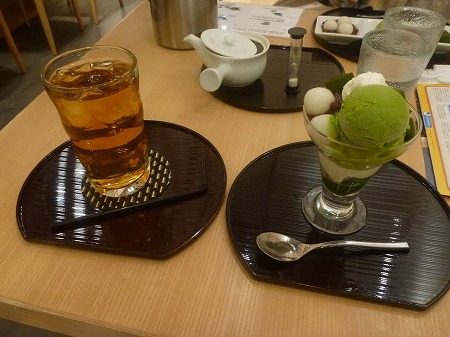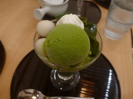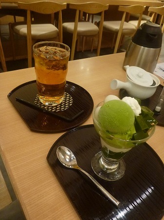 見た目にも緑鮮やかな抹茶を使ったアイスクリームと抹茶寒天、早速一口頂く、この日はかなり気温が上昇23~4℃あり、長袖シャツで少し汗ばむ感じでした、ドリンクは有機和紅茶を選択、喉の渇きを潤すには丁度いい・・