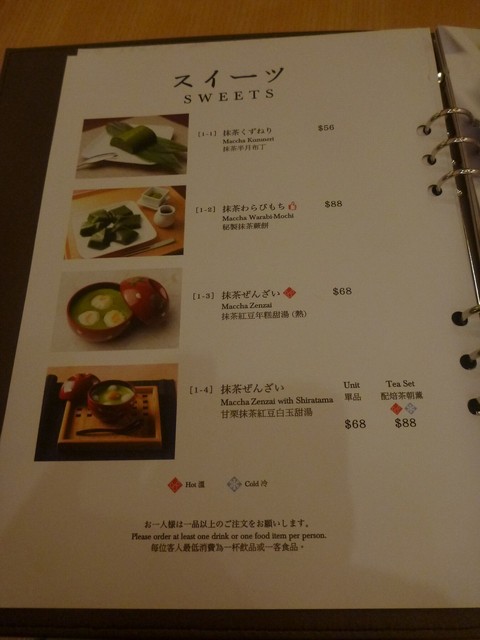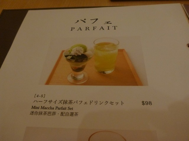 私はハーフサイズの抹茶パフェとドリンクのセットを・・HK$98