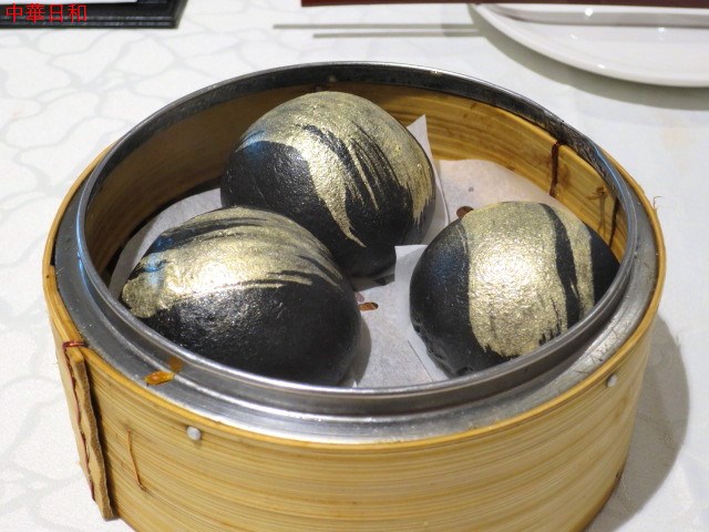 竹炭流沙包HK$48SteamedCharcoalPowderwithEggCustardBUns