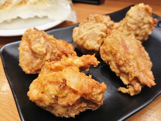 から揚げ(5個)は人気のサイドメニュー。ザクザク食感のしっかりとした衣で、芯までしっかりと火が通ていて、全体的にかための食感。揚げたて感のない、あたたかいから揚げ。