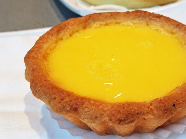 もう一つの人気アイテム。サクサクのパイ生地に、玉子のコクとやさしい甘みでなめらかな生地のコントラスト。店内ではほんのり温かいエッグタルトが楽しめます。