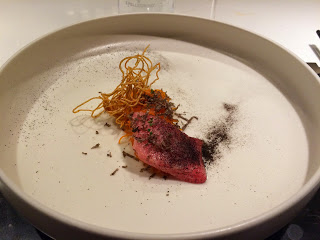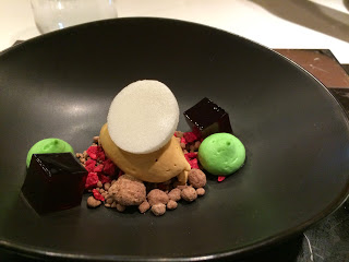 もくもくと液体窒素のスモークが立ち込めたり、材料混ぜ混ぜしてぷるるんとゼリー状の球体を作ったりは、マンダリン東京にあるエルブジ風のタパス・モラキュラバーに似ている