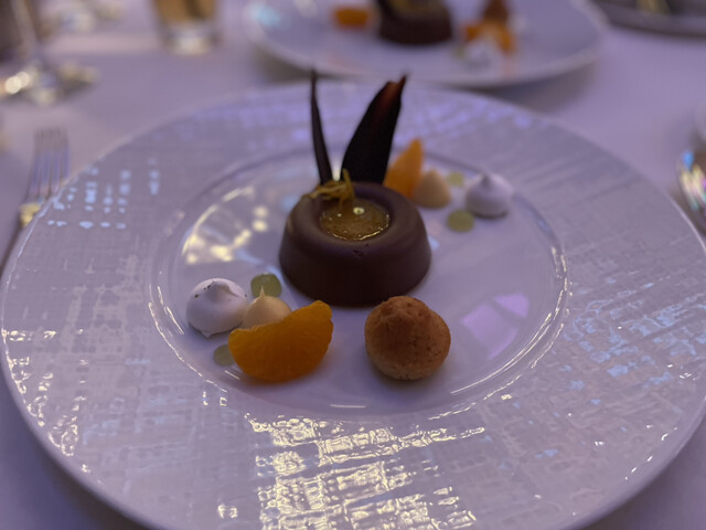 オーダーしたのはTHREE-COURSE WESTERN SET MENU。スターターはPONZU HAMACHI AND KING SALMON CEVICHE。和のポン酢が効いていて、さっぱりしつつも脂ののった魚の旨味がしっかり残る。続くメインはPAN ROASTED PEPPER CRUST ANGUS BEEF TENDERLOIN。肉質の柔らかさは言うまでもなく、ペッパーの香ばしさがアクセントになっていて、ワインが欲しくなる一皿だった。最後はMANDARIN AND CHOCOLATE CRÈME ON HAZELNUT BISCUIT。柑橘の爽やかさと濃厚なチョコのバランスが絶妙で、締めにふさわしいデザート!