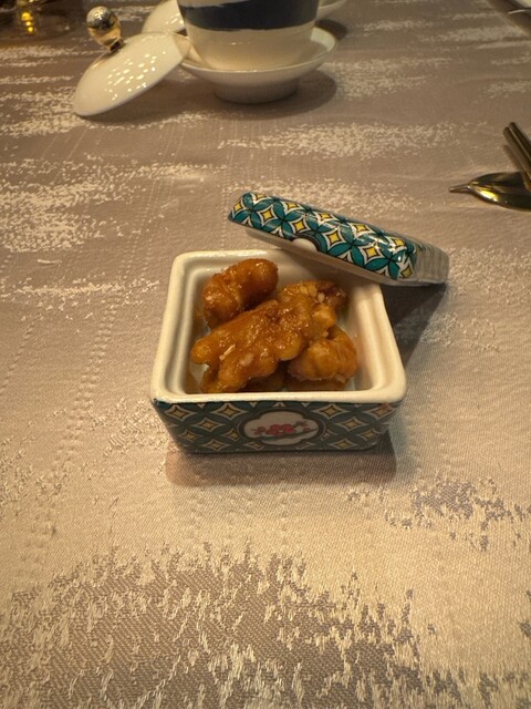 コースのスタートまでは、他のお店同様、突き出しのナッツをいただきながら待ちます。こちらは、甘味のある胡桃だったかと。