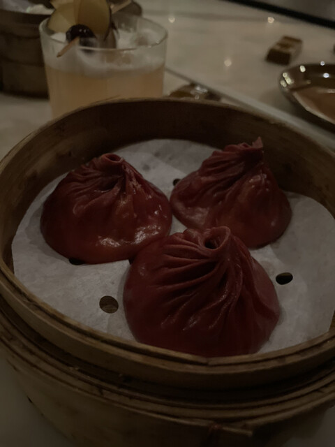この日は飲茶を注文。特に印象的だったのは、小籠包!2種類の中でも「レッド小籠包」は絶品でした。ぱっと見、辛そうですが意外とマイルドで、複雑な旨味が口の中に広がります。香港駐在時代に数え切れないほど食べた小籠包とは一線を画す唯一無二の味わい…まさに「美食」と呼ぶにふさわしい (´▽`).