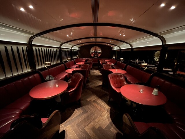 赤い絨毯を超え扉を開けると、そこには広がる落ち着いた空間。照明の柔らかい光が、まさに大人の隠れ家といった雰囲気を演出しています。ここは、単に「お酒を飲む場所」ではなく、五感を満たす体験の場。バーというよりも、一つの世界観に浸れる特別な空間です。