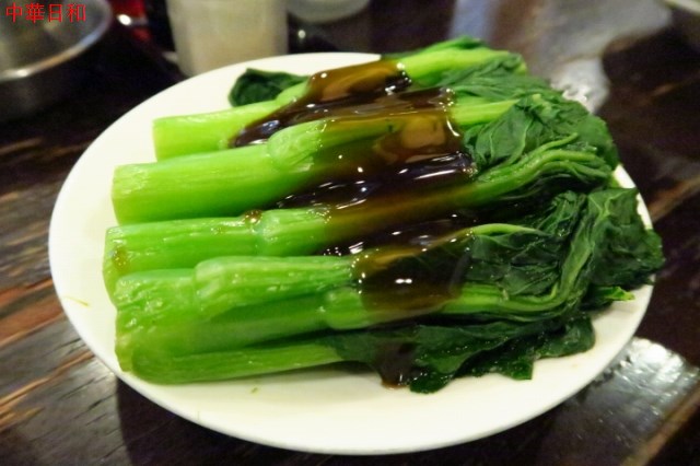 ゆで野菜(芥蘭)のオイスターソースがけ。