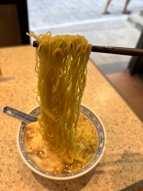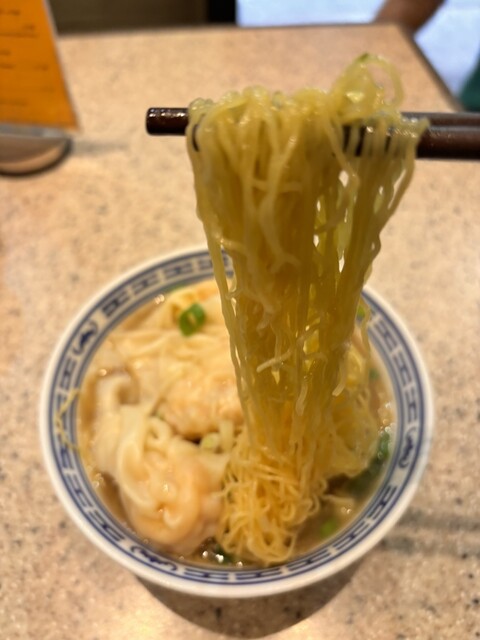 極細ちぢれ麺にあっさりスープ、そして美味しい海老ワンタン!