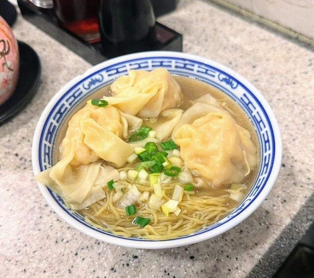 尋ねたときは早い夕食の時間で仕事帰りのお客さんがふらっと立ち寄るような雰囲気で賑わっていました。スープは甘い味付けになっており印象的でした。主役のエビワンタンは大きくごろっとした具がぷりぷりとした食感...