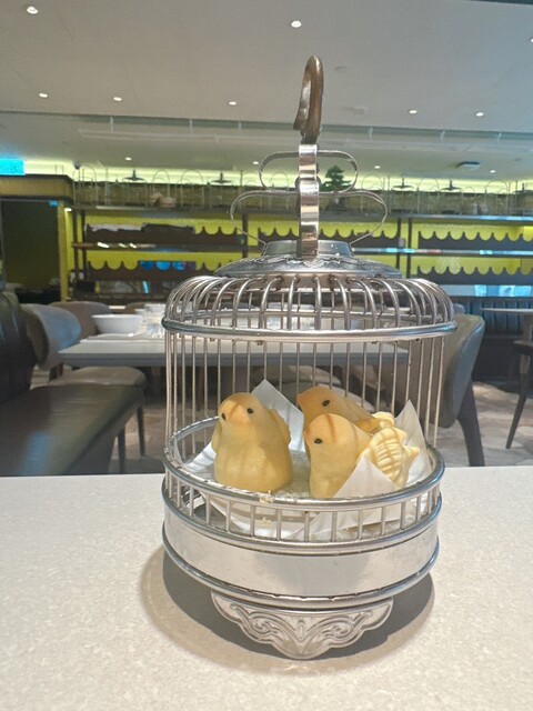 それにデザートで鳥かごの鳥さん(パイナップルケーキ)。飲み物にジャスミンティーを頼みました。