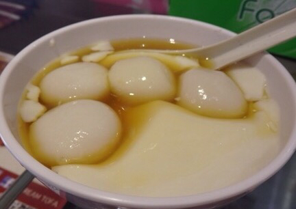 ピーナッツペーストの入った白玉団子入り生姜スープの豆腐花。温かな豆腐花と生姜で身体...
