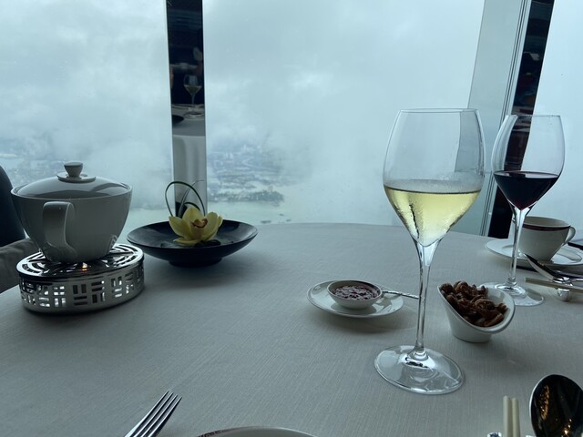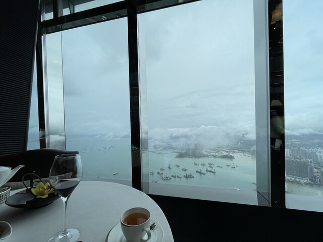 こちらは、世界一高層階のホテルでもあり、490mのビルの102階から118階がホテルとなっています。その102階に位置するのがこのティンロンヒン。ミシュラン二つ星にも輝いており、香港一高い場所にある中華レストランとしても有名です。