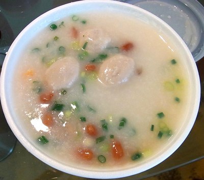 翌朝・・帰国日 早いので部屋でお粥を食べ~ 海皇一品粥:22HK$ (約220円)