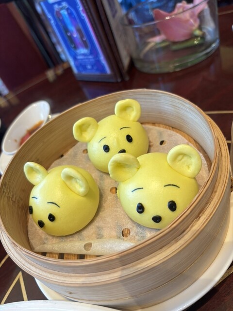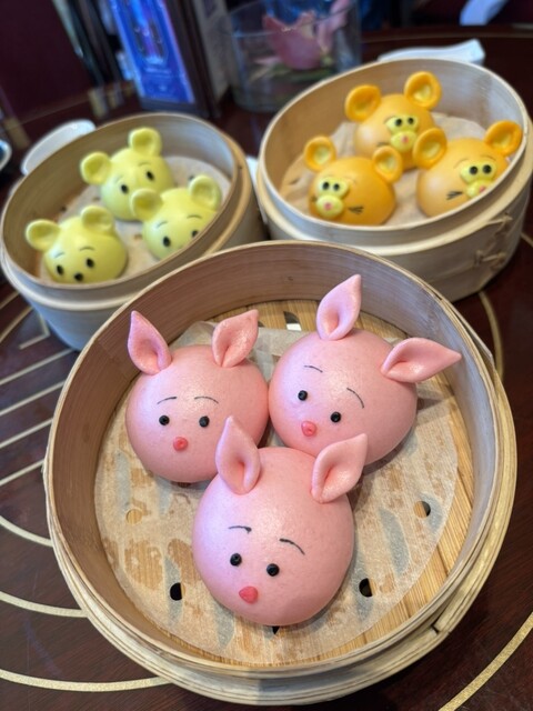 以前来た時はオラフやリトルグリーメン、ベイマックスの飲茶があったのですが、今回はプーさんシリーズ!プーとティガー、ピグレットの飲茶を頼みました。