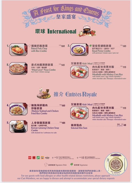 あらかじめ入場券とランチとディナーとおやつがセットになったバウチャーで利用しました。ランチもディナーも160香港ドルまでオーダー可能です。
