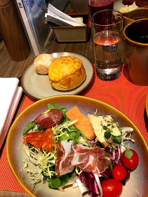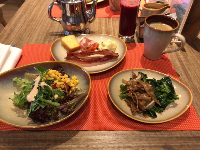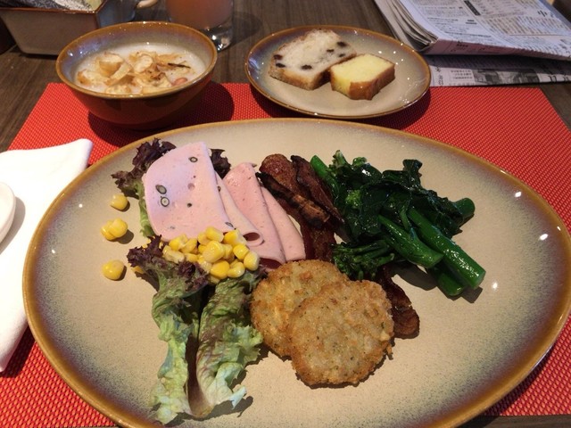 ここ、パンがすごく豊富で、パンにつけるものたちも自家製のジャムとかあって豊富