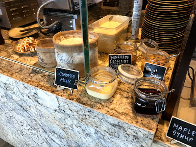 朝からスイーツもあれこれ(ヨーグルト、ミューズリー、スムージーがベースだが)で、可愛くディスプレイされている