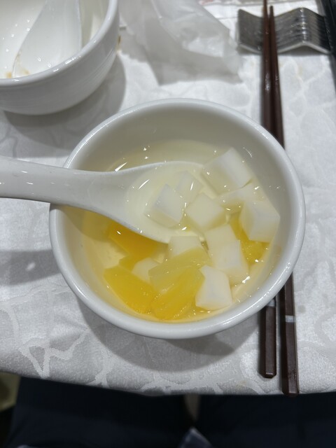 デザートは杏仁豆腐…これ、缶詰のフルーツ寒天じゃない?