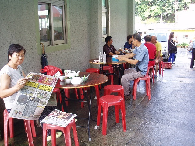 早朝から営業しているお店で、早いほうがゆったりと食べられると聞いていたので、ホテルを6時に出てやってきました。早朝の山の中は、空気が澄んでいて、本当に気持ちいい!早起きは三文の得です。お店の1階部分(オープンエア!)は、テーブルと椅子がたくさん並んでいて、すでに地元のお客さんが飲茶の朝食を楽しんでいます。