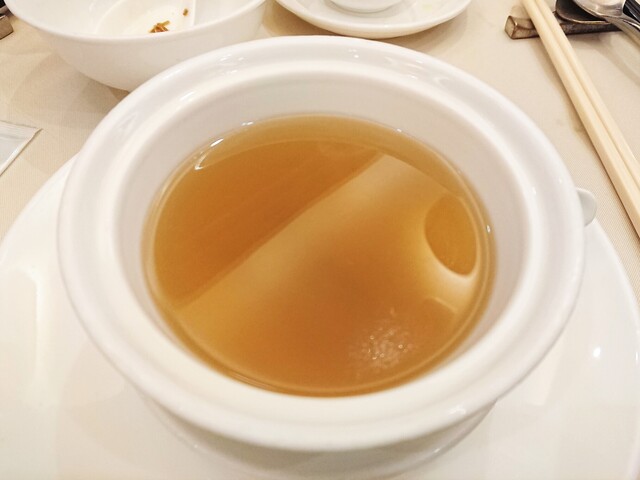 富嘉閣のシェフが腕によりをかけた豪華な広東料理には、帝有限公司が取り扱う香港初の特殊海上コンテナで輸入された日本産の「活貝」、チルド空輸の銘柄鶏「華味鳥」、沖縄県産の銘柄豚「Porcp Rosso」など、日本各地の食材を使用。ビールは日本から生樽で輸入されたサントリー「ザ・プレミアム・モルツ」がいただけました。
