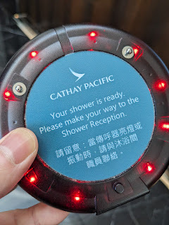 ブルブルが鳴り始めました。何の呼び出しかというと、当ラウンジにはいパン的なシャワーの他「カバナ」という個室の安息所が用意されているのです。個室数が少ないので受付で予約をする必要があるのですが、私がお邪魔した際は15分ほどの待ち時間で済みました。