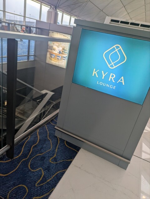 香港国際空港、第1ターミナル。ゲート23過ぎたあたりに看板があり、地下へ降ります。