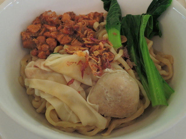 インドネシアは8割がムスリムなのでアルコールをたしなまず、アルコールを置いていない店が多いと聞いていたが、この店はビール、カクテル、ワインなど何でもあった。 ビンタンビールという、日本でも聞いたことのある銘柄で、軽くておいしかった。 麺類で、Mie Gyam Woku Bakso Pangsitという料理らしいを写真で選びました。 こちらは、出てくるのが遅い。それを「早くしろ」と思うのは間違いだろう。お国柄であり、郷に入っては郷に従え。のんびり待つしかない。