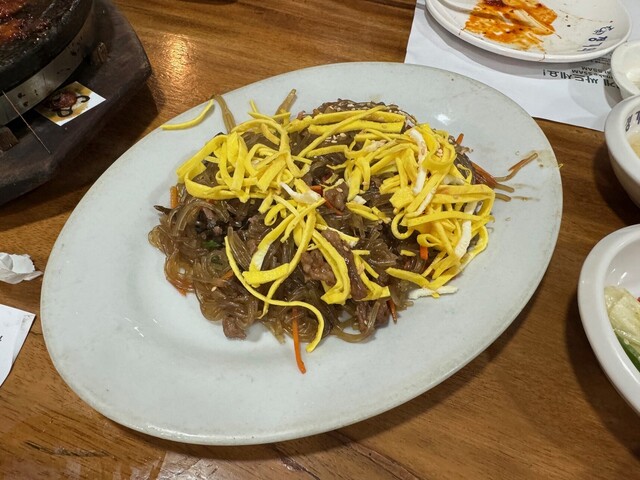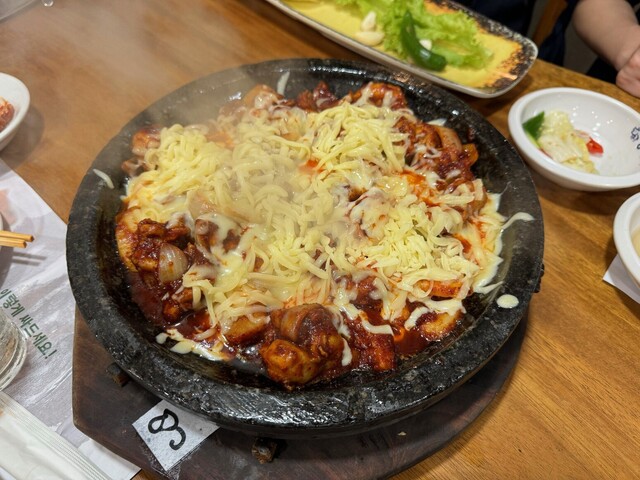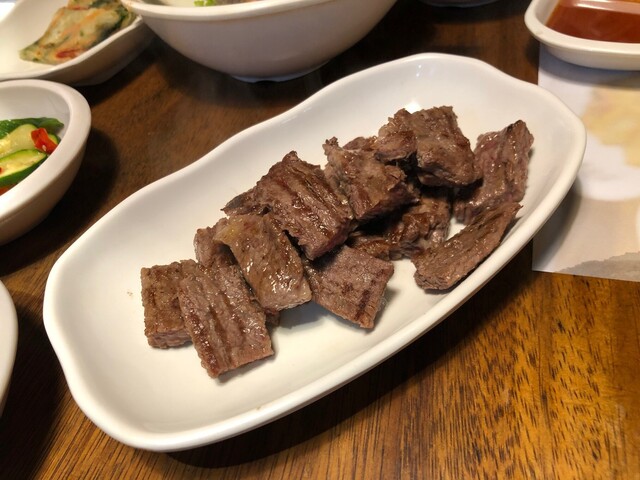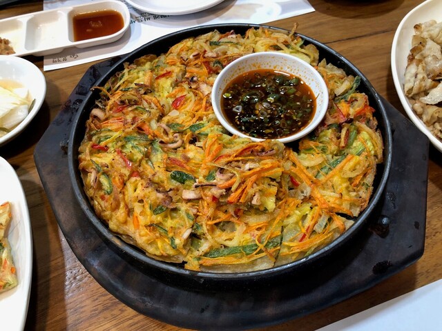 チヂミは表面がカリカリに焼けていて美味しいです~。