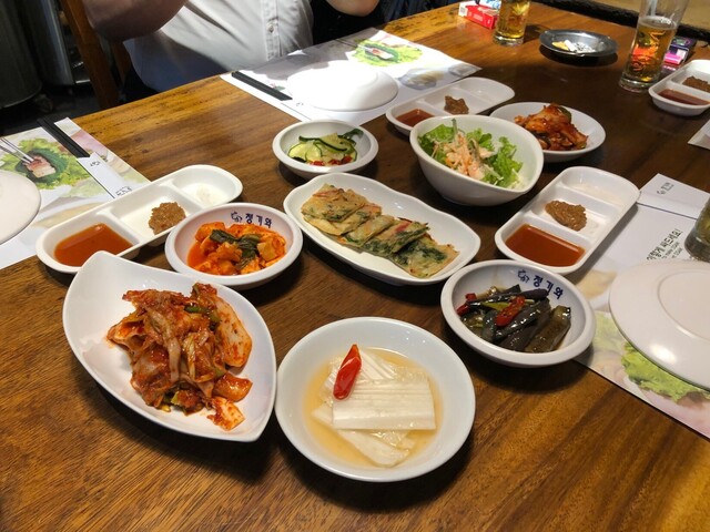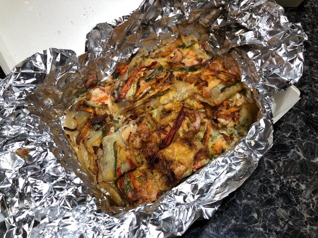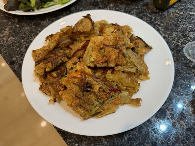 チヂミは表面がカリカリに焼けていて美味しいです~。