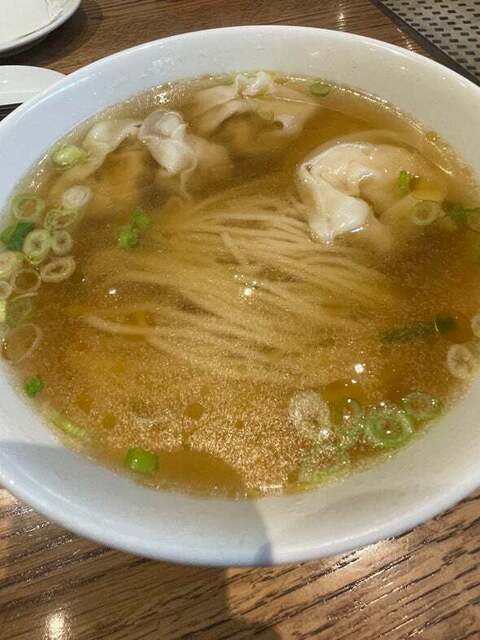 日本では海老ワンタンと肉ワンタンが数個ずつ入ってたりするパターンが多いけどここは一つのワンタンの中にプリ...