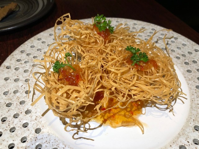 先ずは、エビ団子、なんとなく中華風に感じます~。味はピリ辛。
