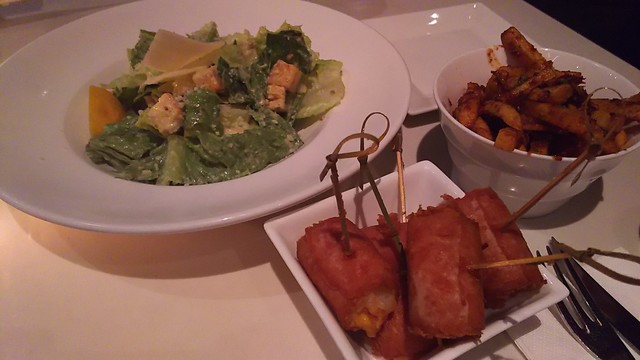1705 BLUEGRASS 前菜 クラシックシーザーサラダ、ポテトのベーコン巻きフライ、ポテトフライ