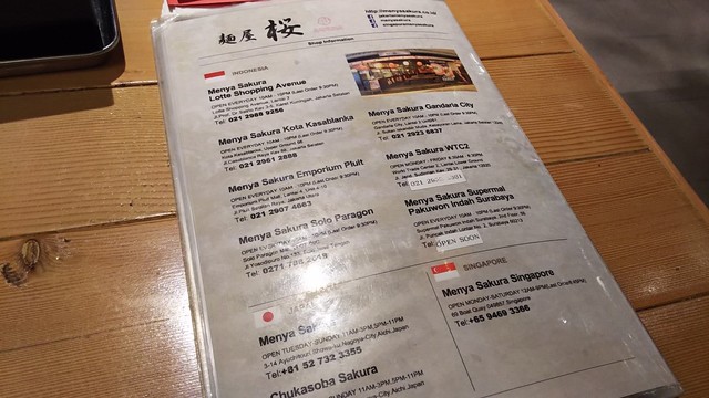 1706 麺屋 桜Kasablanka Mall メニュー(店展開)日本には名古屋に2店舗