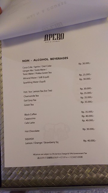 ☆毎日19時まででビールがもう一杯@APERO BAR & LOUNGE(City Walk,ジャカルタ)