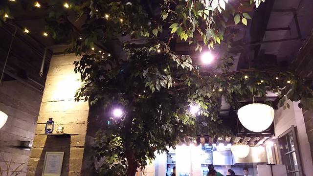 少し照明暗めで木や緑のオブジェが目立ちます。