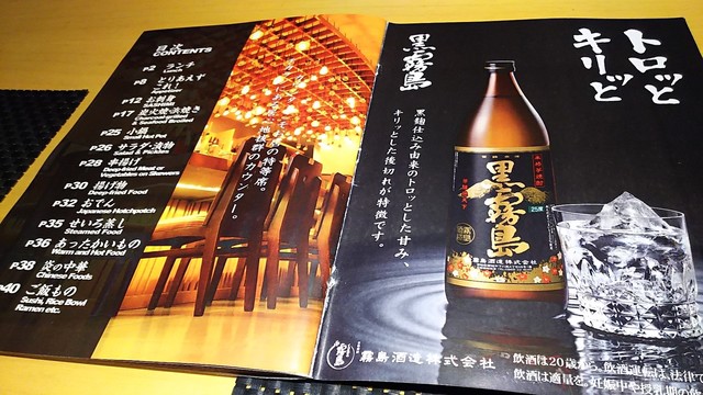 1707_Fish Man-魚男-_メニュー(1ページ目から黒霧島の広告!)