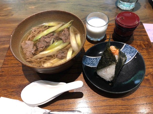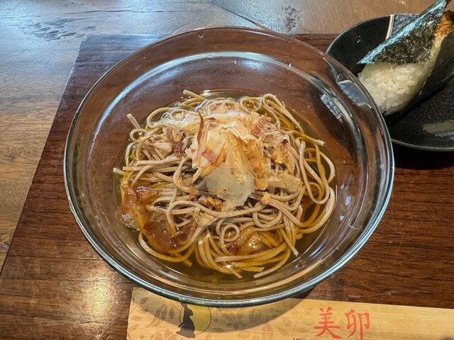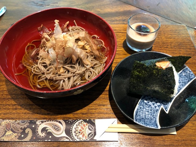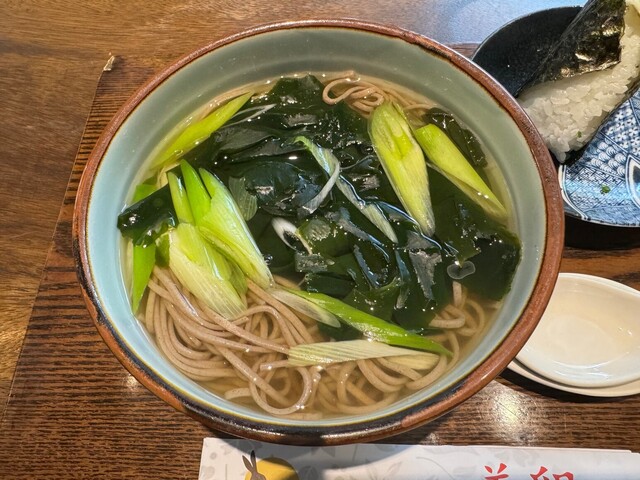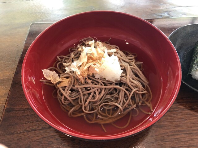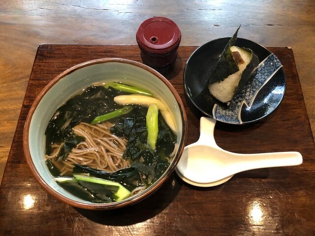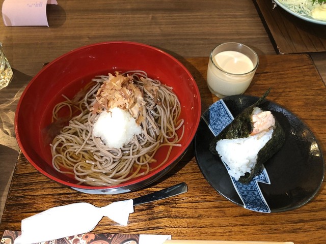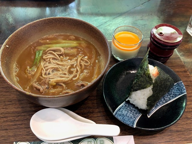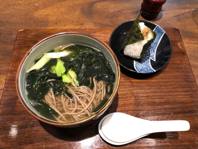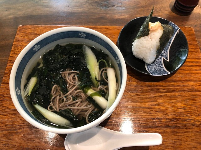 お蕎麦、優しいお味、おにぎりは鮭が入っていて中々でした〜。