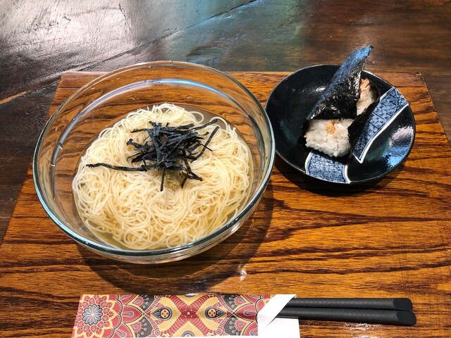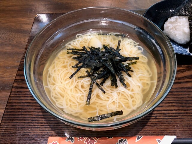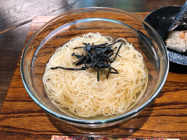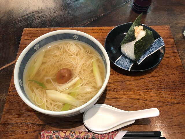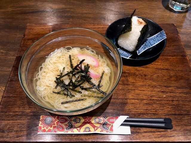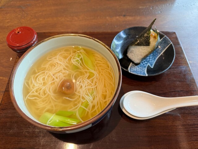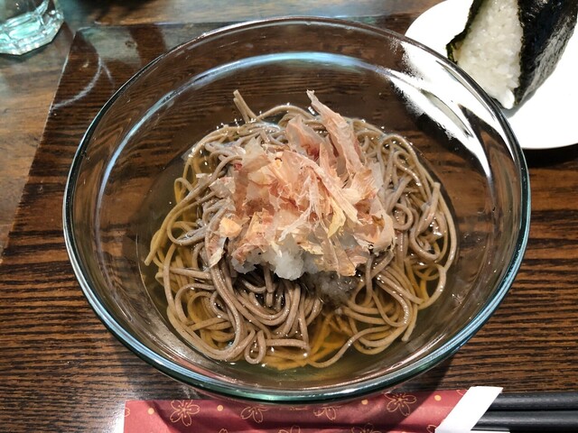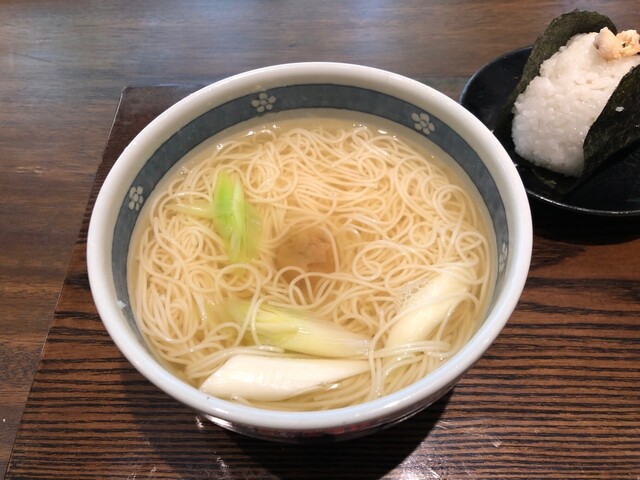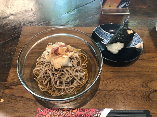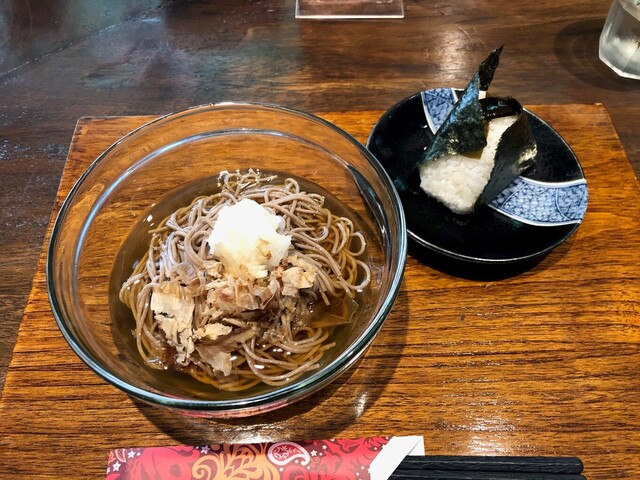 お蕎麦、優しいお味、おにぎりは鮭が入っていて中々でした〜。
