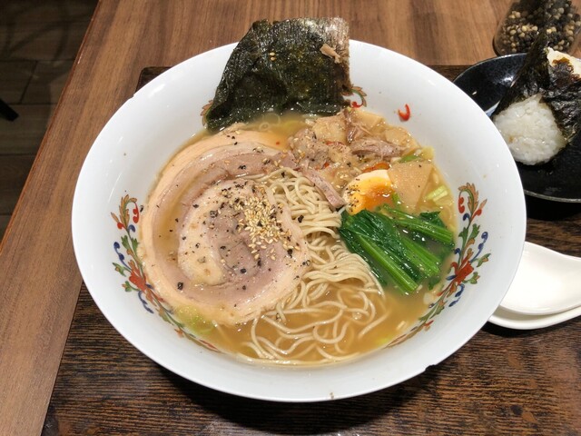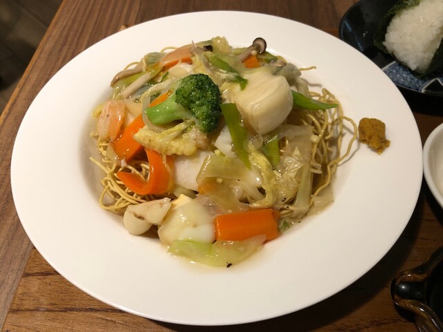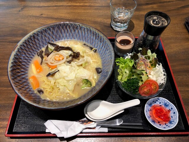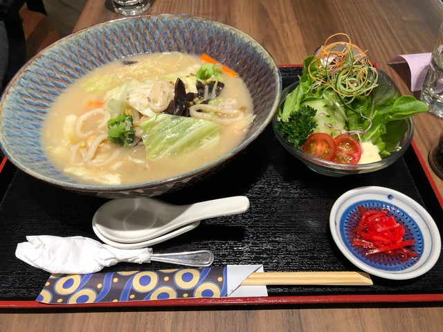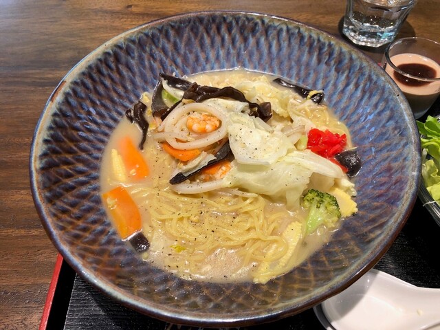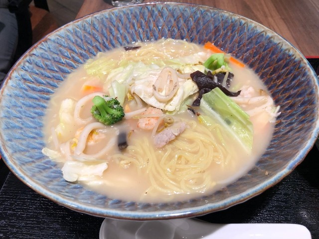 チャンポンは薄味、エビ、イカ、野菜と具沢山です〜。